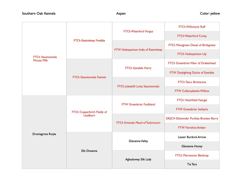 Aspen’s dam is our own Rosie, daughter of FTCh Copperbirch Paddy of Leadburn. Rosie was a phenomenal producer for SOK HQ, and Aspen has proven to be very much like her mom. We are excited to add her to the lineup at SOK Lone Star. Stone has done an incredible job with her training, she is an impressive girl to watch in the field!
